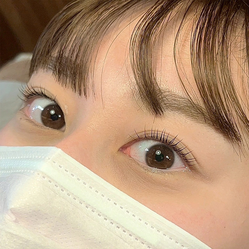 - アイラインを引く方、たれ目にされたい方など、普段のメイクに合わせた似合わせをご提案します。アイテープをする方はアイテープをする想定でカールをかけすぎないようにします。