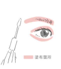 まつ毛は下から目元にスタンプを押す様に優しく全体にプッシュ。眉毛はチップを横に寝かせながら滑らかに動かします。